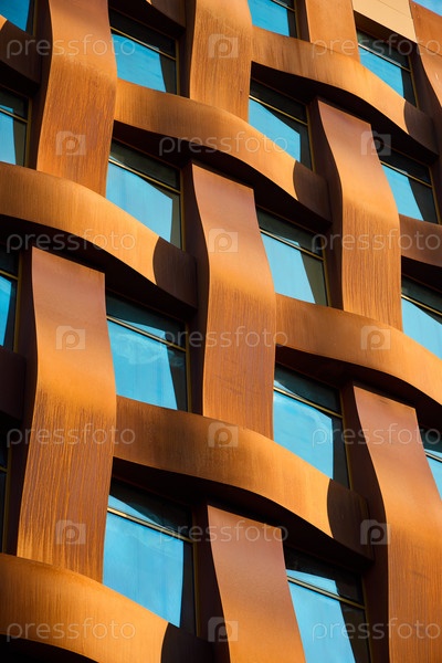 Архитектурная деталь, демонстрирующая современное здание со сложным плетеным узором