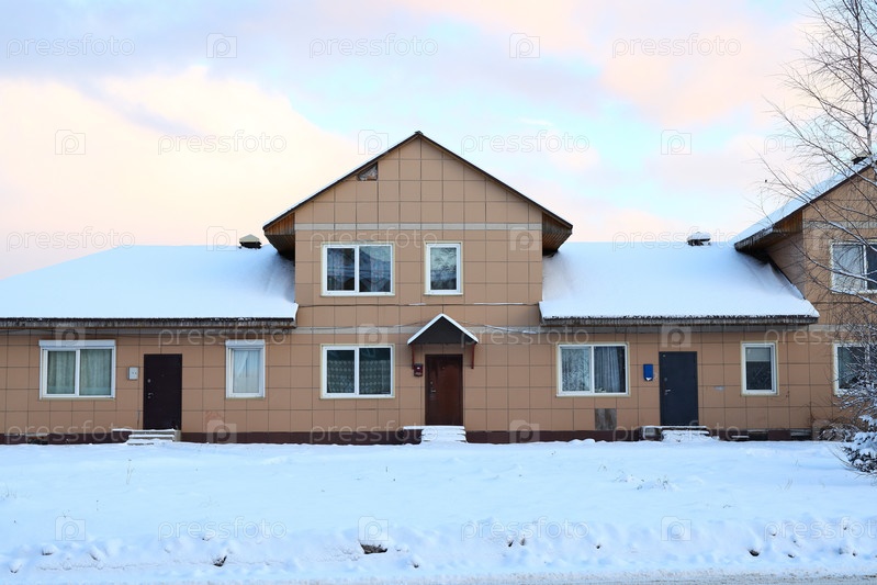 Очаровательный заснеженный жилой дом, расположенный на фоне безмятежного зимнего пейзажа