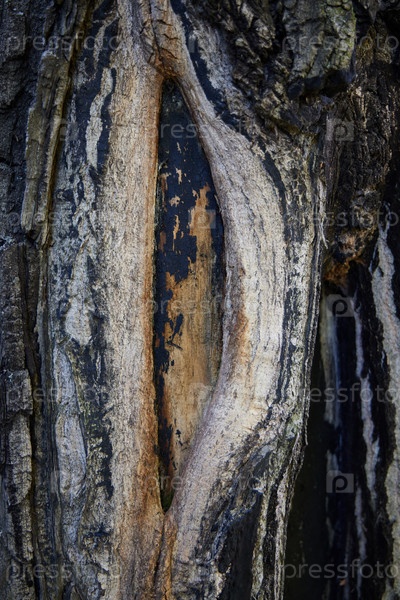Текстурированная кора дерева с уникальными и замысловатыми узорами и яркими цветами