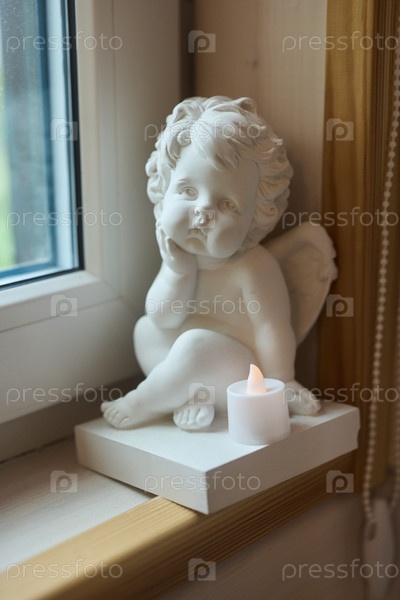 Очаровательная фигурка ангела со свечой на подоконнике, создающая прекрасную атмосферу