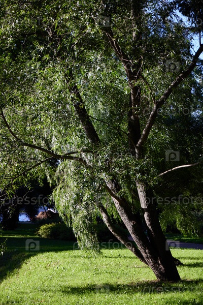 Изящная ива, величественно возвышающаяся в естественном и захватывающем дух окружении