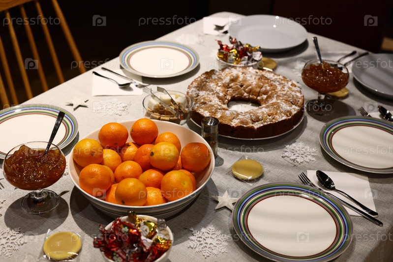 Восхитительная и праздничная сервировка стола, наполненная красочными фруктами и угощениями для празднования