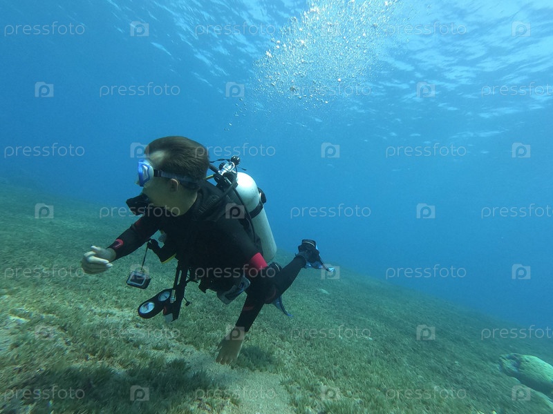 Страстный дайвер, полностью погруженный в захватывающее исследование морской жизни