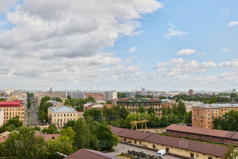Прекрасный панорамный вид, демонстрирующий городской пейзаж, дополненный пышной зеленью