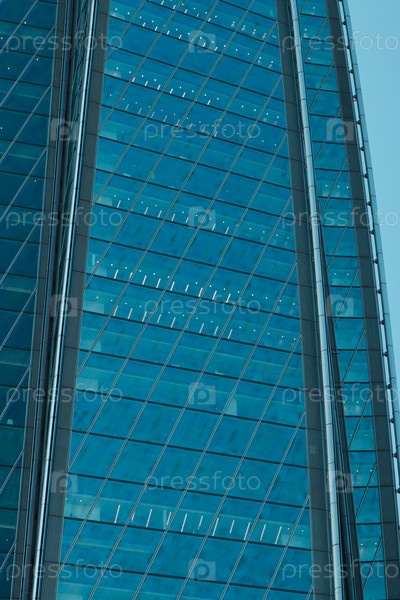 Современный стеклянный фасад здания демонстрирует отражения и современный дизайн в городской среде