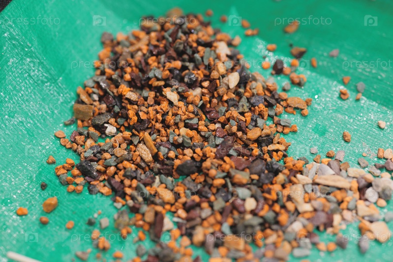 Яркий, красочный гравий, разбросанный по пышной зеленой поверхности, идеально подходит для творческих проектов