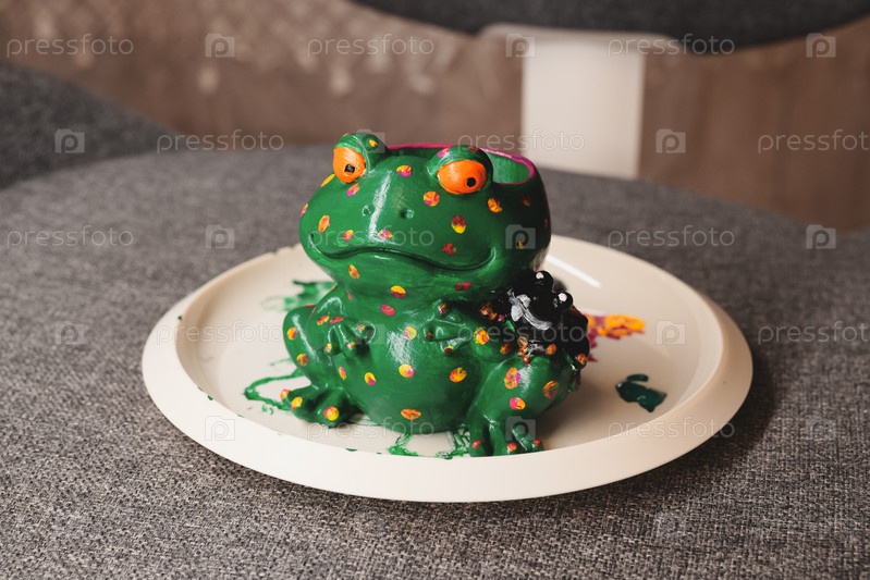Яркая и красочная керамическая скульптура лягушки с уникальным и игривым дизайном