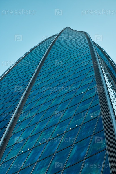 Потрясающее отражение современного небоскреба в яркой городской среде вокруг него