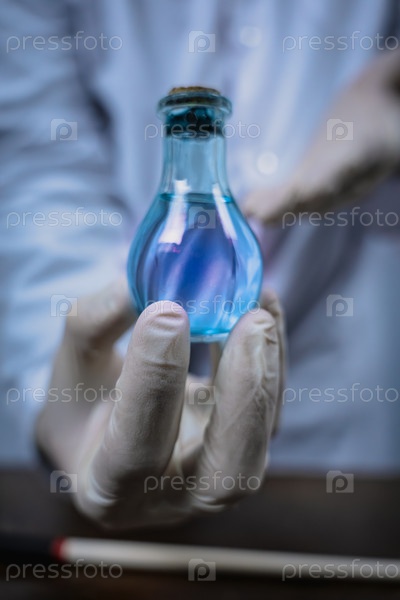 Ученый держит пробирку с цветной жидкостью в лаборатории