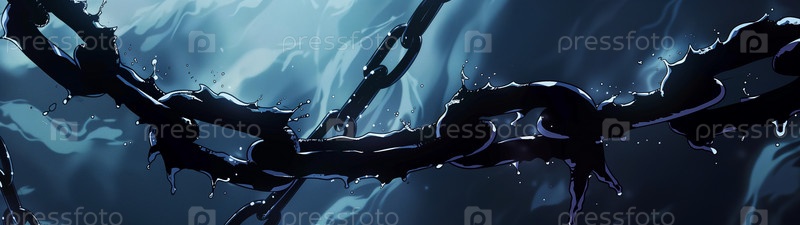 Темные цепи в жутком синем свете