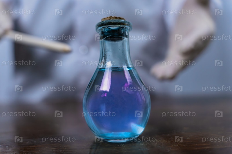Крупный план синей жидкости в лабораторной пробирке