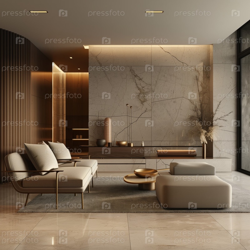 Современный роскошный интерьер гостиной с абстрактным искусством