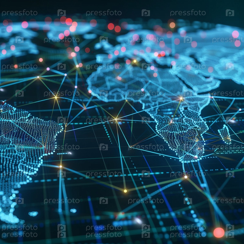 Абстрактная цифровая карта. Концепция глобальной сети и обмена данными