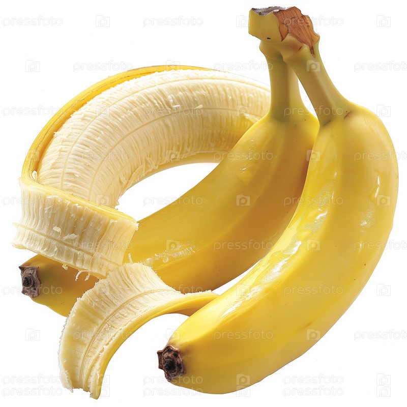 Целый и очищенный банан на белом фоне