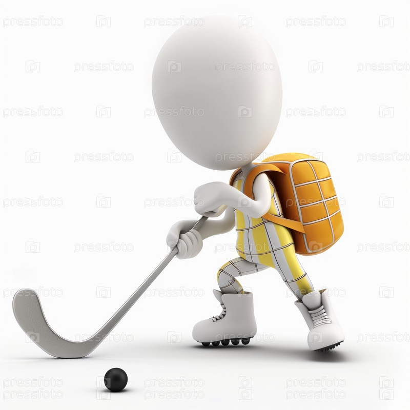 Стикмен играет в хоккей, изолированный на белом фоне