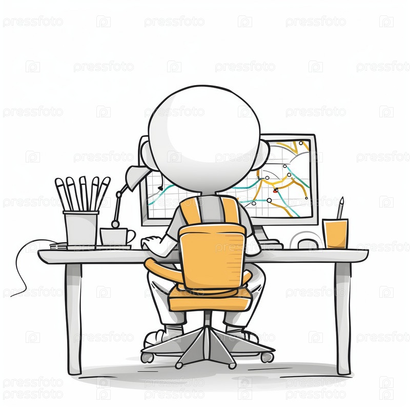 Стикмен работает за столом в офисе