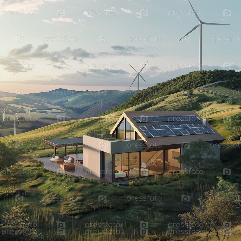 Деревня с солнечной панелью и ветряными мельницами. Инвестиции в устойчивые проекты и экологически чистые технологии. Профессиональная подготовка
