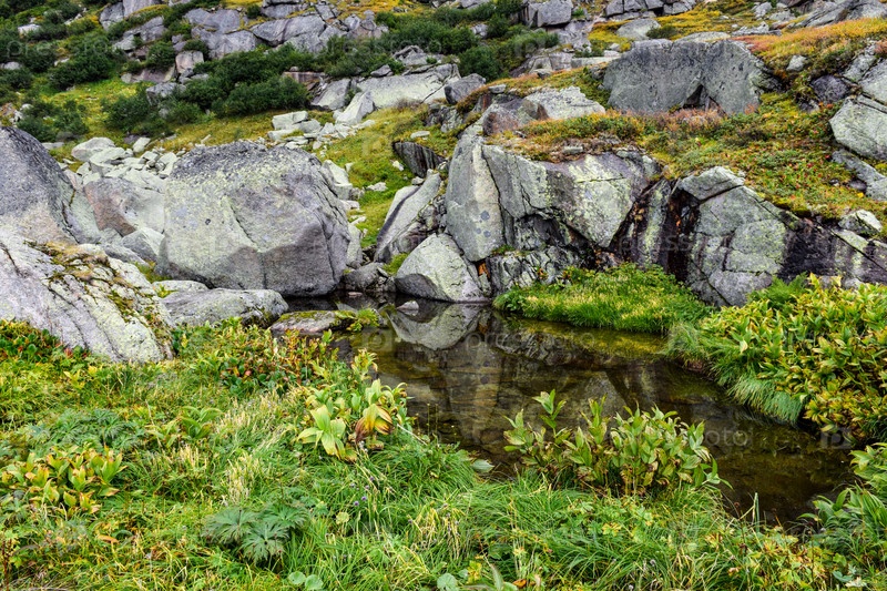 Горы, горный пейзаж, Ергаки, лето, мегалиты, горная тайга, небо, облака, озеро