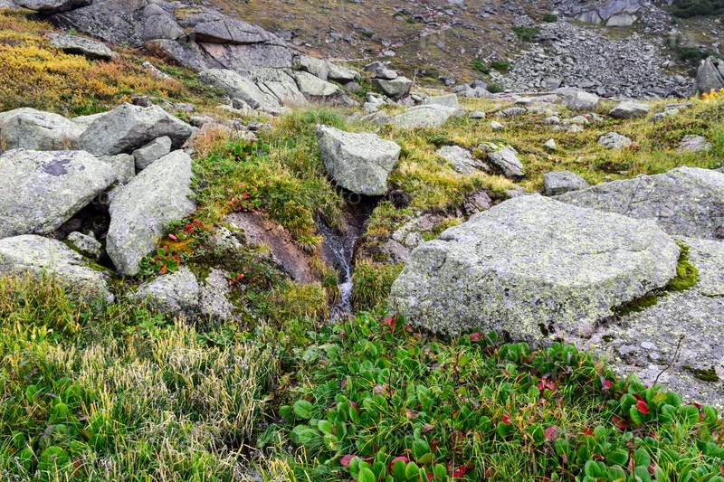 Горы, горный пейзаж, Ергаки, лето, мегалиты, горная тайга, небо, облака, родник