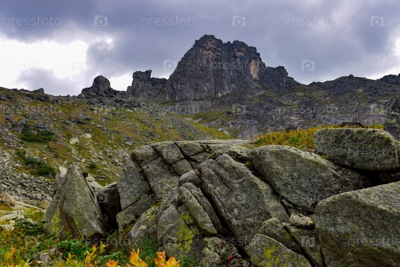 Горы, горный пейзаж, Ергаки, лето, мегалиты, горная тайга, небо, облака