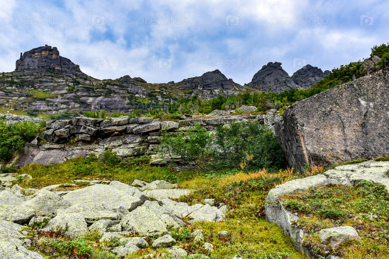 Горы, горный пейзаж, Ергаки, лето, мегалиты, горная тайга, небо, облака