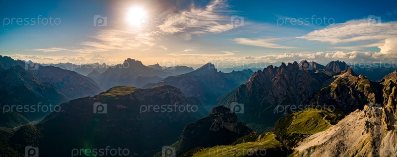 Панорама национального природного парка Тре Чиме в Доломитовых Альпах. Прекрасная природа Италии