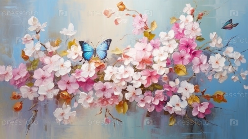 Картина с изображением букета цветов на синем фоне