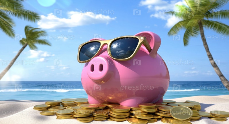 Мечта о богатстве: Копилка на солнечном пляже