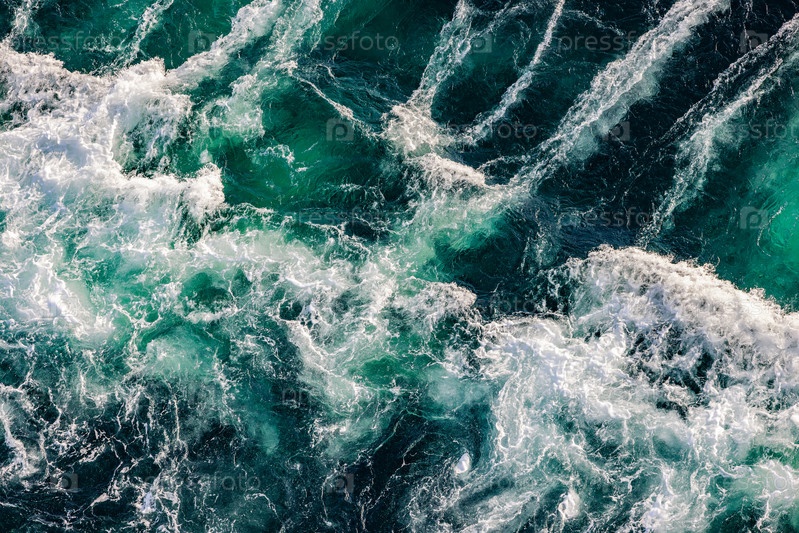 Голубые волны воды реки и моря встречаются друг с другом во время прилива и отлива