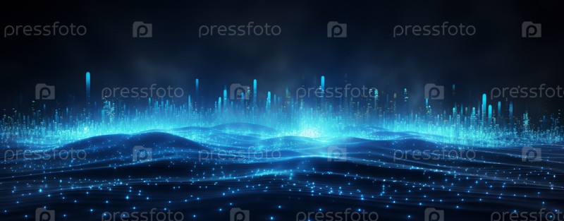 Абстрактный технологический ландшафт с элементами дополненной реальности, виртуальной реальности и искусственного интеллекта для инновационных цифровых концепций