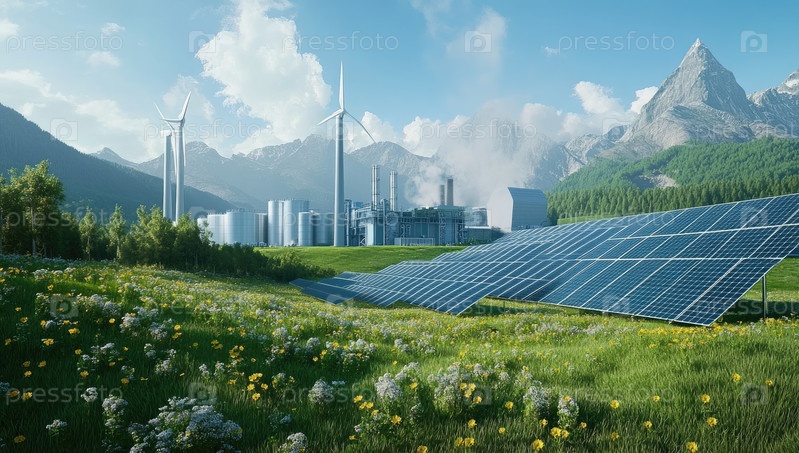 Завод использует возобновляемые источники для выработки электроэнергии в цветущей долине
