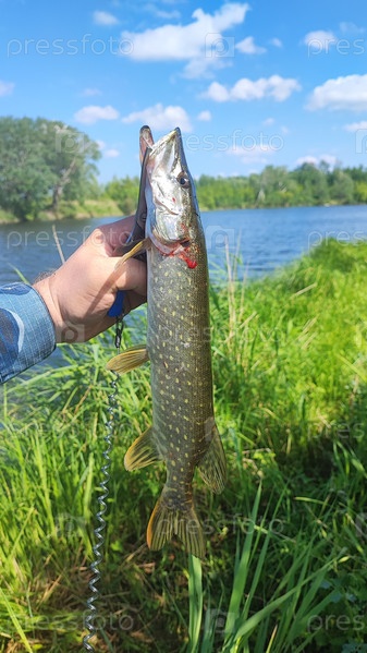 Небольшая щука пойманная в реке Исток, Алтайский край
