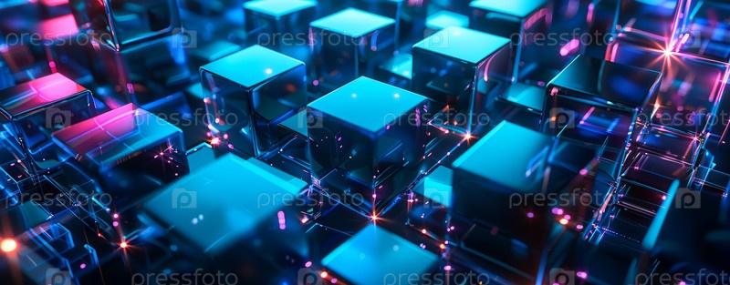 Абстрактный технологический ландшафт с элементами дополненной реальности, виртуальной реальности и искусственного интеллекта для инновационных цифровых концепций