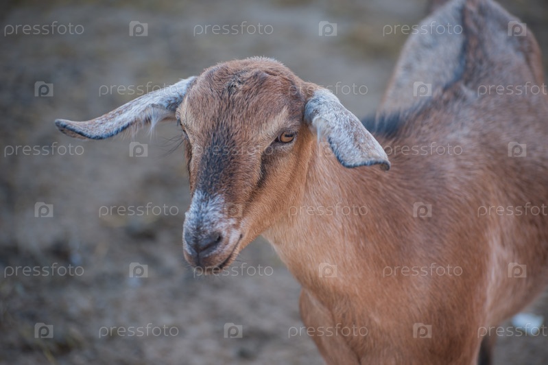 Домашняя коза или козел в загоне