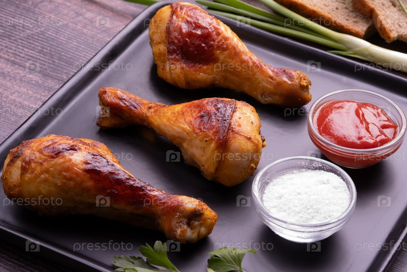 куриные голени на черной тарелке