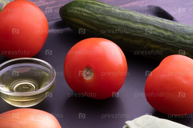 Овощи, Помидоры, огурцы, лук