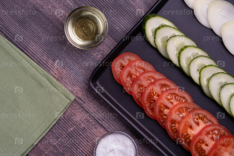 Овощи, Помидоры, огурцы, лук