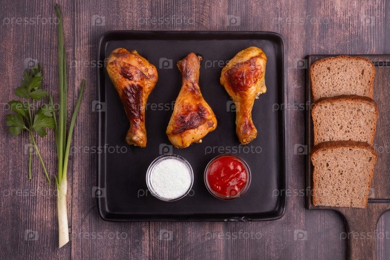 куриные голени на черной тарелке