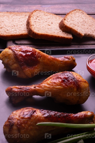 куриные голени на черной тарелке