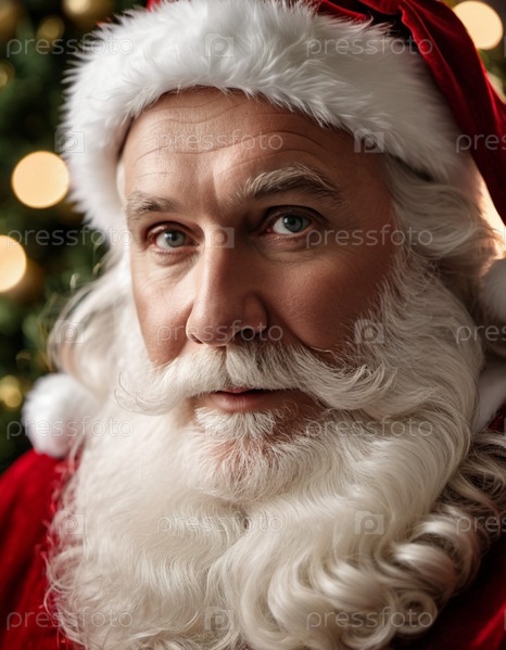 Санта воплощает дух праздника с радостной улыбкой, пушистой белой бородой и приветливым поведением, идеально передавая суть рождественского настроения среди праздничного декора. Генеративный ИИ