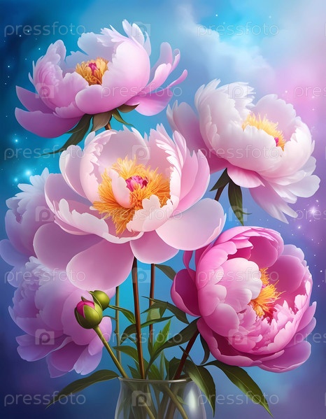 Потрясающая композиция из цветущих розовых пионов заполняет кадр, с мягкими пастельными тонами на заднем плане. Цветы демонстрируют нежные лепестки и богатые текстуры, прославляя природную элегантность. Генеративный ИИ