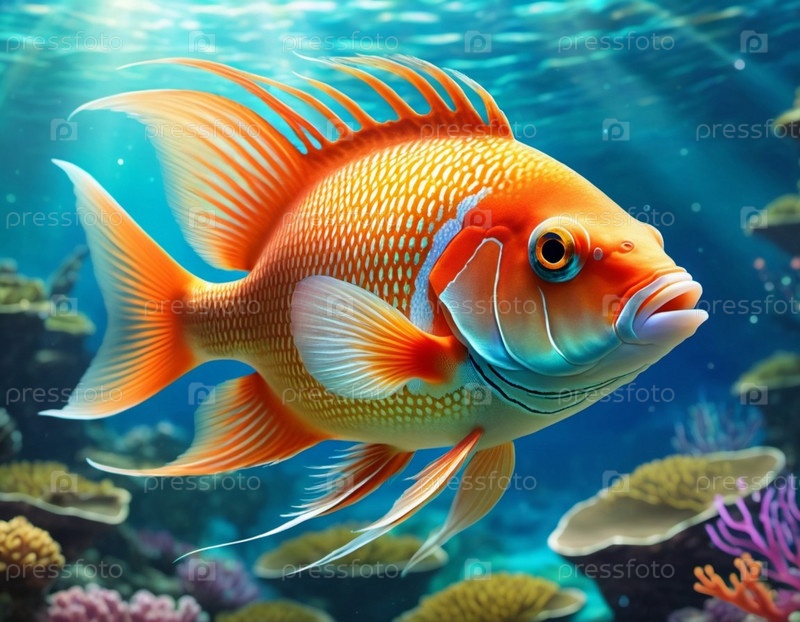 Яркие оранжево-бело-желто-синие-красные рифовые рыбы плавают через коралловый риф. Солнечные лучи проникают в морскую воду. Разнообразие животных. Экология гидросферы. Антропогенный фактор, влияющий на гибель коралловых рифов. AI