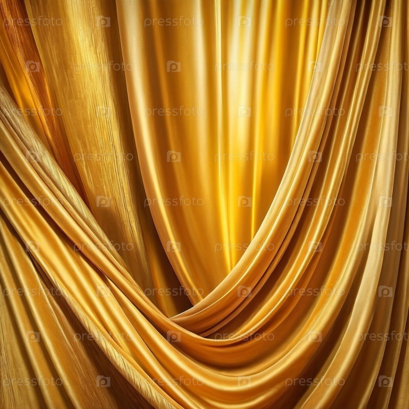 Занавес с мягкими плавными стекающими складками. Глубокий желтый цвет и роскошная текстура создают драматическую и элегантную атмосферу. Декорация и дизайн интерьера. Дорогая занавес из богатой ткани. AI
