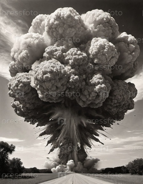 Ядерный взрыв — процесс высвобождения большого количества тепловой и лучистой энергии в результате неконтролируемой цепной реакции ядерного деления за очень короткое время. Создан ИИ. Термоядерный синтез