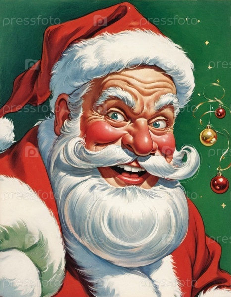 Классический рождественский Санта с радостным выражением лица и культовым красным костюмом на праздничном фоне, передающий дух рождественского веселья и праздников. Генеративный ИИ