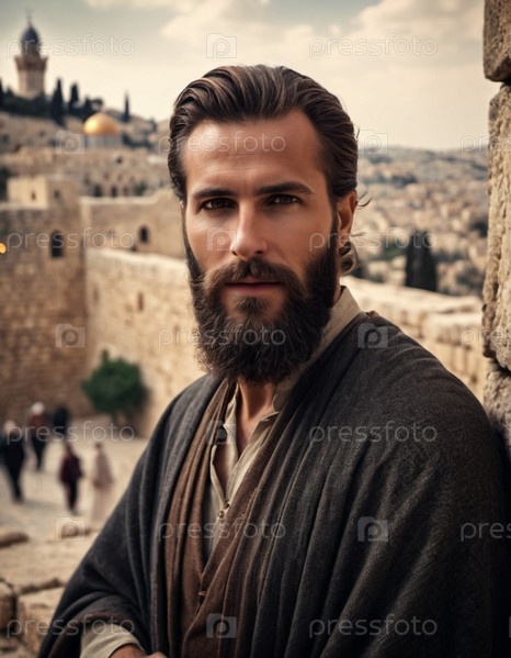 Мужчина оперелся на историческую стену Иерусалима, глубоко погруженный в размышления.Солнечный свет отбрасывает теплые тона, подчеркивая грубый камень и его задумчивое выражение, фиксируя момент размышлений