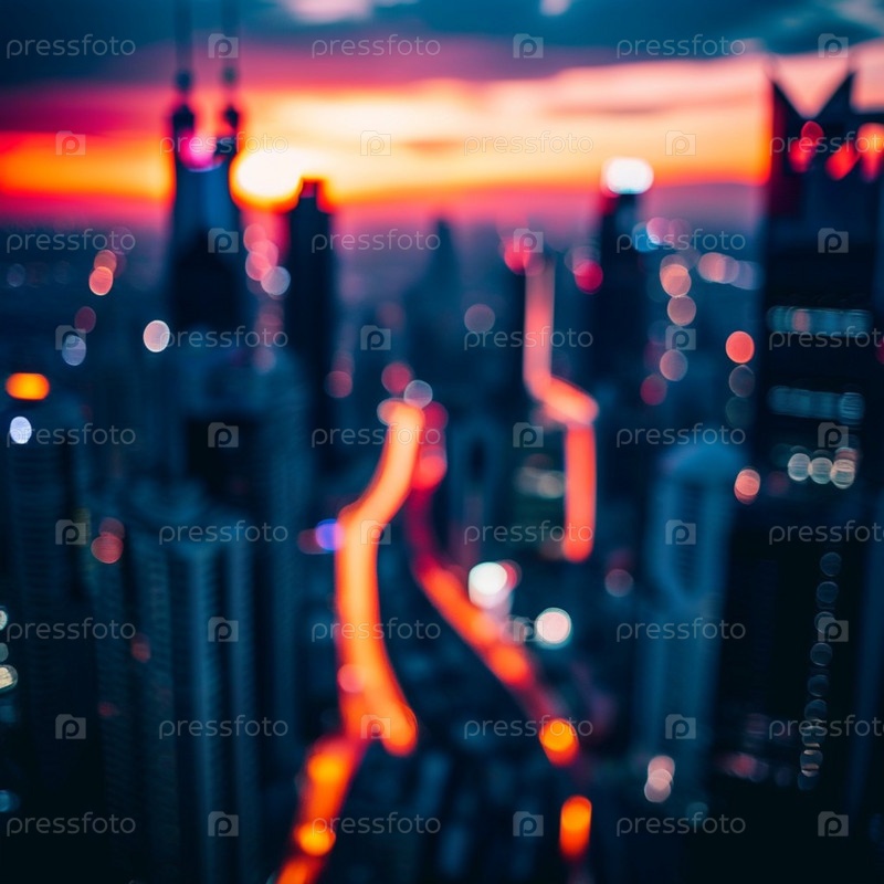 Захватывающий закат бросает теплый отблеск на возвышающиеся небоскребы в оживленном мегаполисе, создавая потрясающий контраст с красочным небом. Энергичная атмосфера городской жизни. Генеративный ИИ