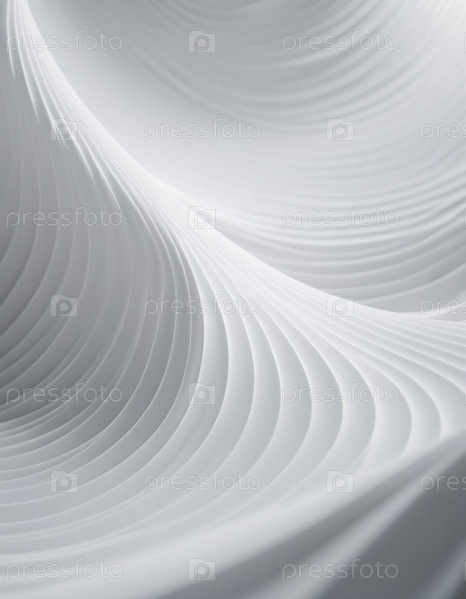 Плавные 3D-волны белого и серого цветов создают увлекательный абстрактный образец с гладкими изгибами и световыми градиентами на темном фоне, вызывая артистизм и спокойствие