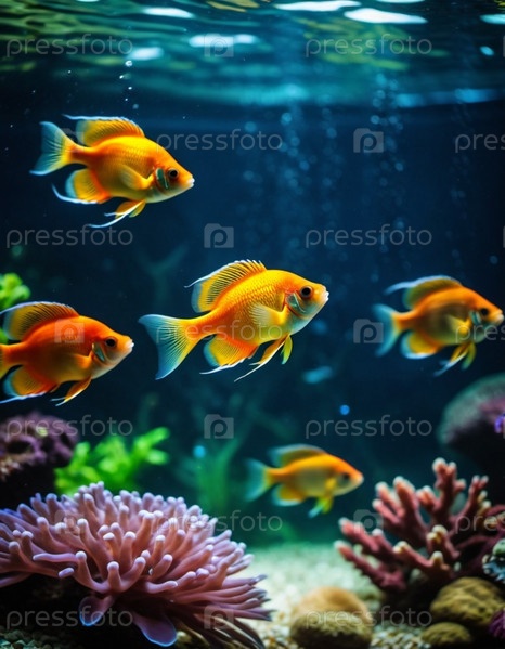 Яркие оранжево-бело-желто-синие-красные рифовые рыбы плавают через коралловый риф. Солнечные лучи проникают в морскую воду. Разнообразие животных. Экология гидросферы. Антропогенный фактор, влияющий на гибель коралловых рифов. AI