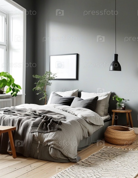 Спокойная спальня в скандинавском стиле с нейтральными тонами, естественным освещением и уютным текстилем, созданным для спокойного отдыха. Генеративный ИИ